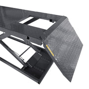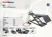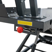 Professional motorcycle lift, expandable to quad and lawn tractor lift with 680 kg load capacity and air-hydraulic unit.