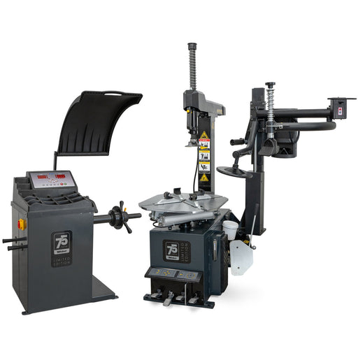 Professional tire service package, consisting of a tire mounting machine with auxiliary mounting arm and a wheel balancing machine from the Weber E...