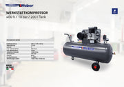 Workshop compressor 400 V / 10 bar / 200 l tank