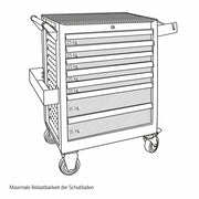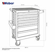 Mobile workshop trolley with 7 drawers and anti-slip coating on the top, filled with 300 high-quality tools for daily workshop use.