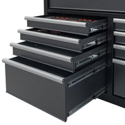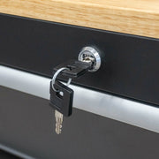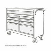 Mobile workshop trolley with 9 drawers and wooden worktop, filled with 298 tools for daily workshop use.