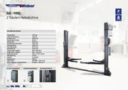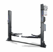 Electro-hydraulic 2-post lift with a 4500 kg lifting capacity, drive-over plate, asymmetrical, double-telescoping lifting arms, automatic release of the safety latches, and a 400 V electrical connection. The lift is partially pre-assembled, allowing for quick commissioning.