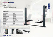 Electro-hydraulic 2-post lift with a 4200 kg lifting capacity, drive-over protection, asymmetrical lifting arms, automatic release of the safety latches, and a 230 V electrical connection. The lift is partially pre-assembled, allowing for quick commissioning.