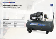 Workshop compressor 230 V / 8 bar / 100 l tank